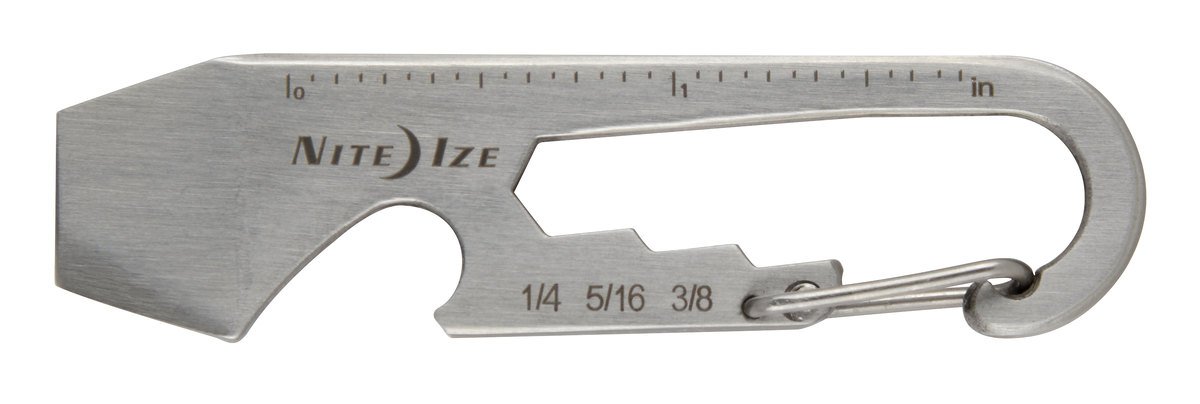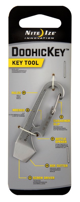 Made of durable stainless steel, the Nite Ize DoohicKey features a half-dozen tools that do everything from tighten bolts and screws to open a bottle of refreshment, all in a simple key tool that fits in the palm of your hand. On one end of the DoohicKey is a sturdy carabiner clip, allowing you to attach keys to it, or attach the DoohicKey itself to any loop or ring. Opposite the clip is an etched ruler for on-the-spot measurements, and the carabiner opening is strategically shaped to function as a wrench. On the other end, the DoohicKey features a bottle opener, a flat head screwdriver, and a box cutter. With a streamlined, clever design that makes it easy to carry, attach, remove, and reattach, it’s always as at-hand as it is handy.